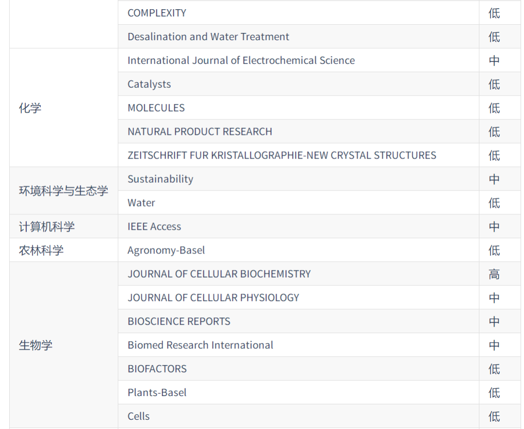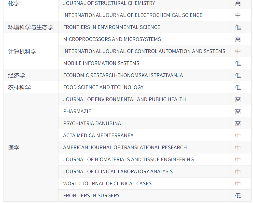 2020年《国际期刊预警名单(试行)》: