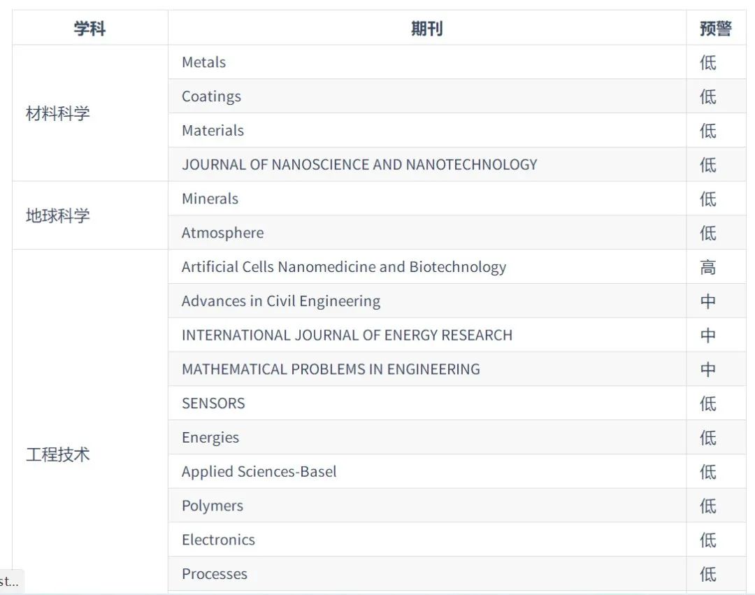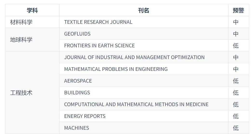 2024年中科院预警期刊名单: