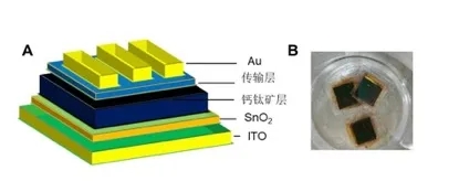 钙钛矿太阳能电池的结构(A)和实物(B)