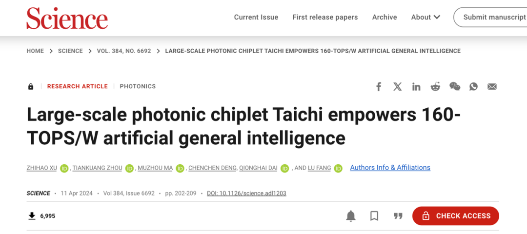 他们首创干涉-衍射分布式广度光计算架构,研制了全球首款大规模通用智能光计算芯片——太极(Taichi),其系统级能效为每秒每焦耳160万亿次运算,超越主流商用AI芯片3个数量级,为后摩尔时代高性能智能计算开辟了新路径。