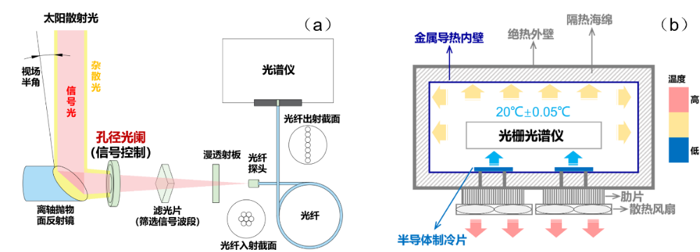 (a)高光谱紫外狭缝信号增强部件;(b)高光谱紫外探测器噪声抑制部件