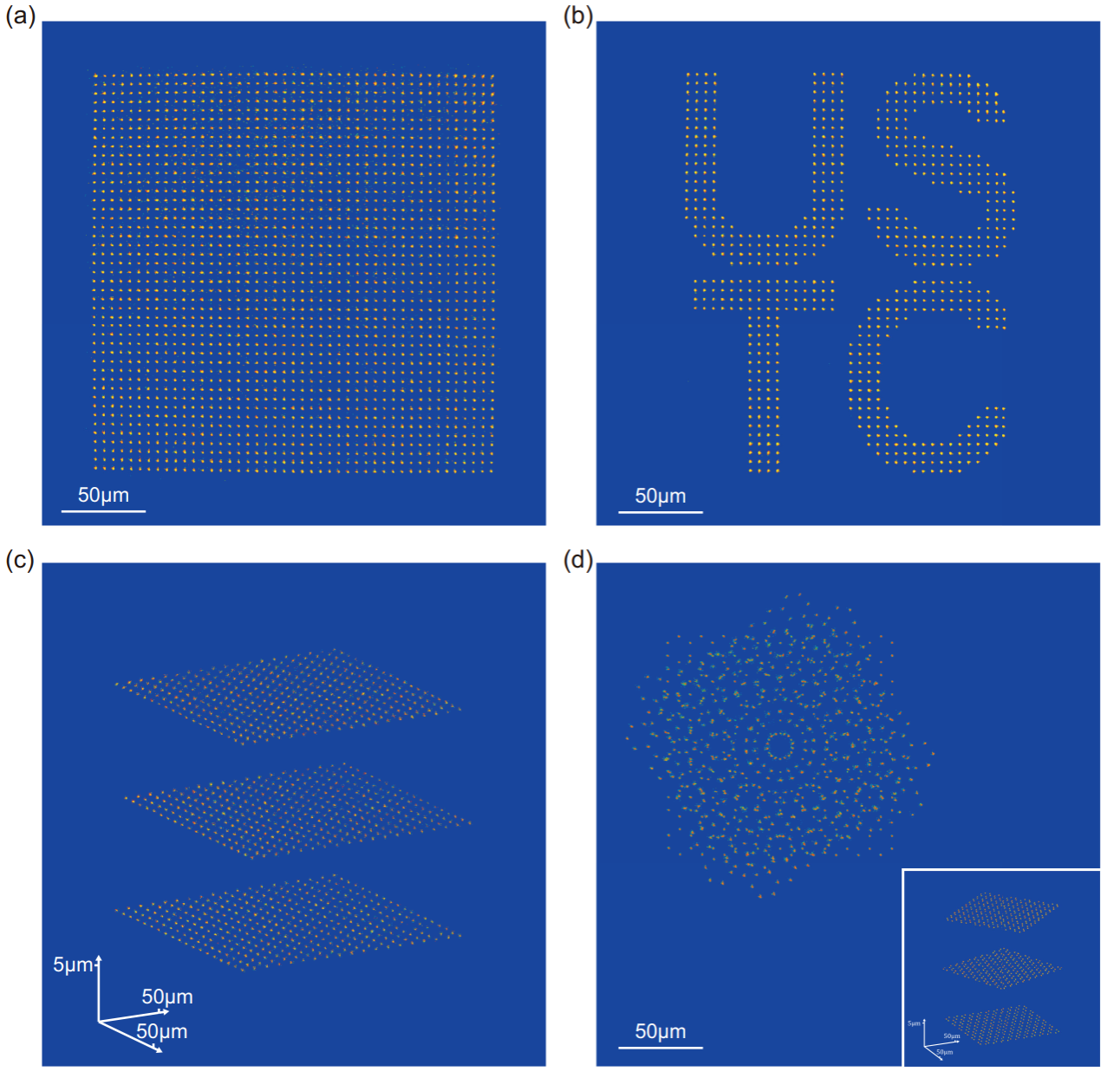 数千原子无缺陷二维和三维阵列重排实验结果图。中国科大供图