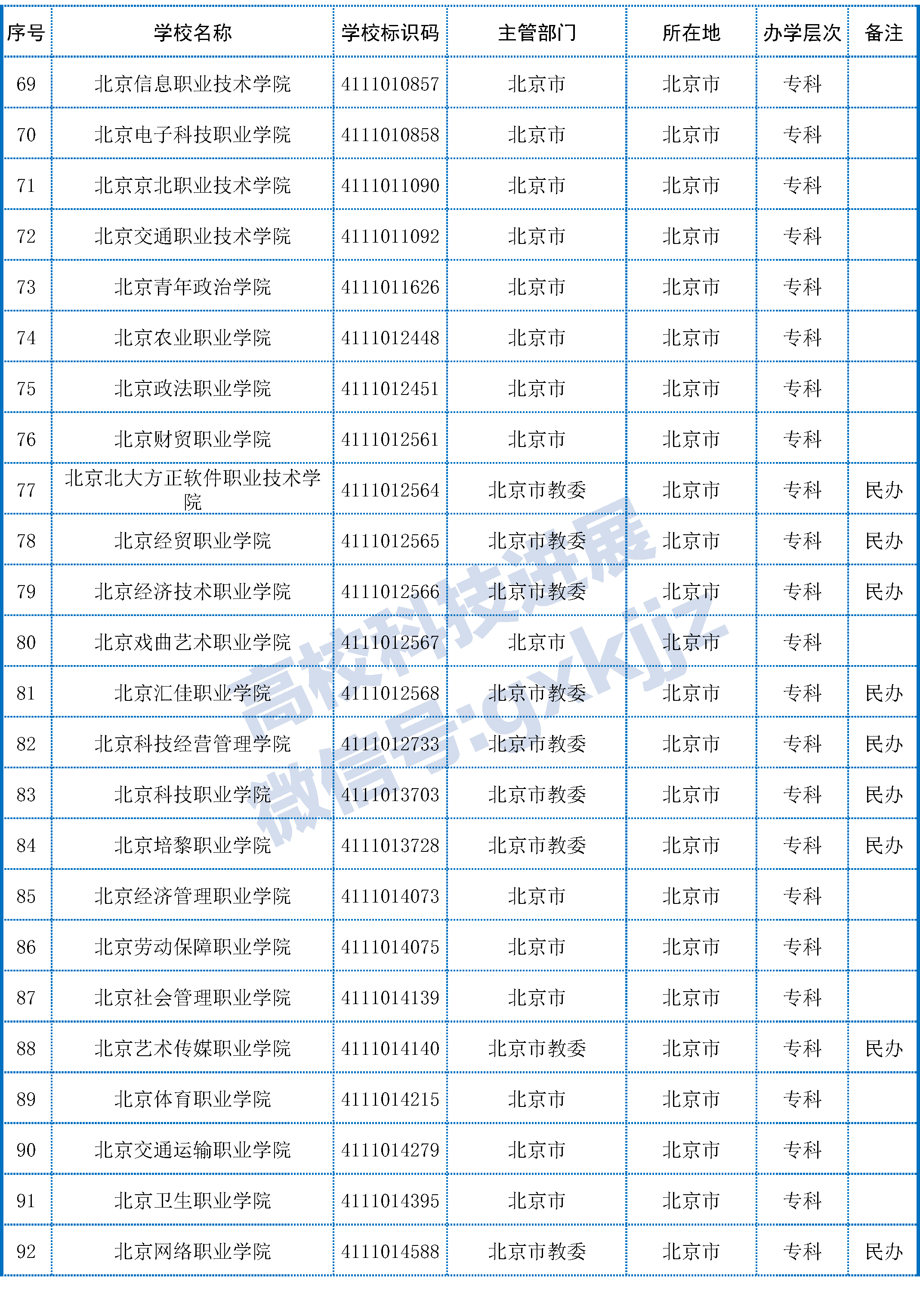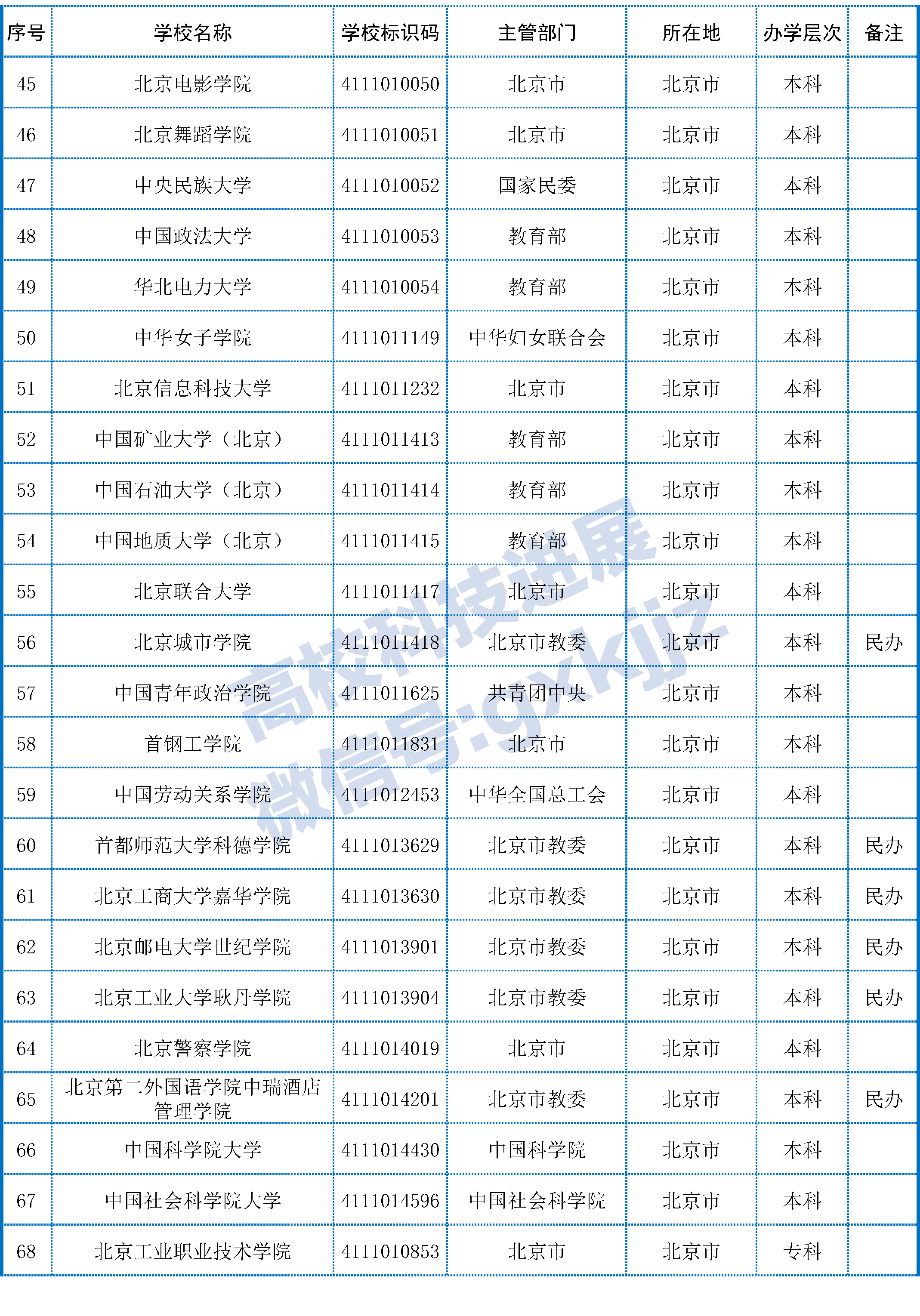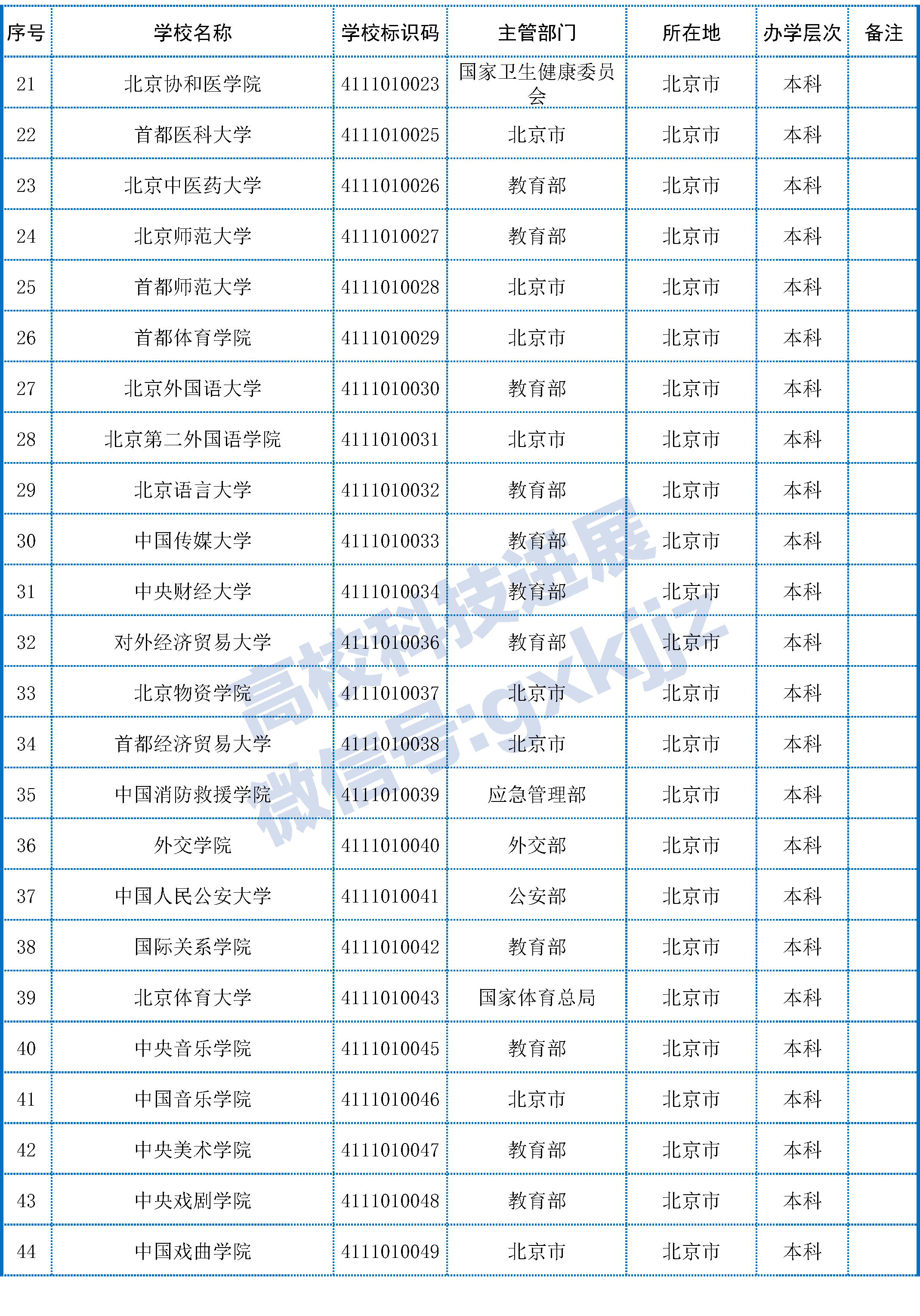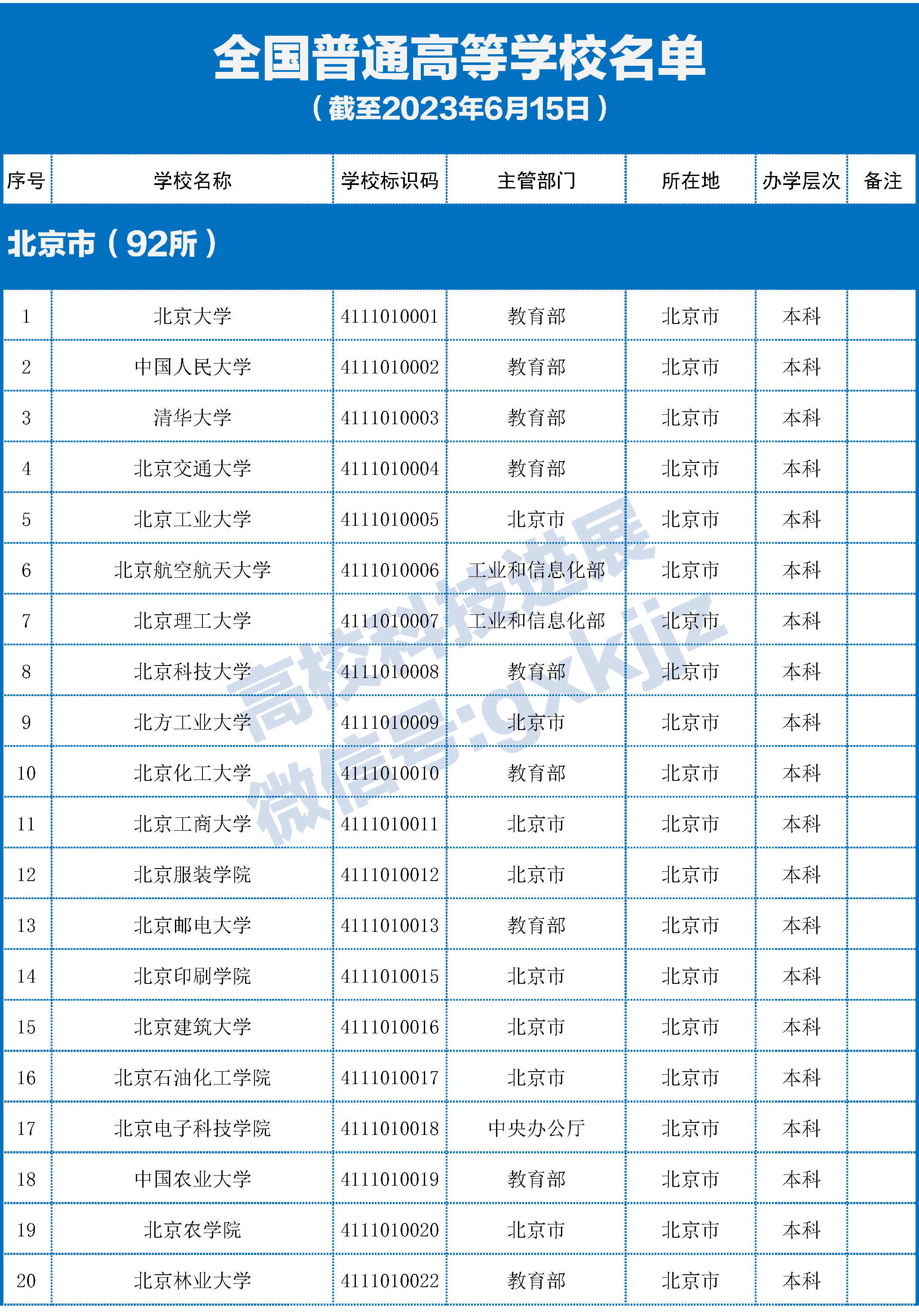 截至2023年6月15日,全国高等学校共计3072所,其中:普通高等学校2820所,含本科院校1275所、高职(专科)院校1545所;成人高等学校252所。本名单未包含港澳台地区高等学校。