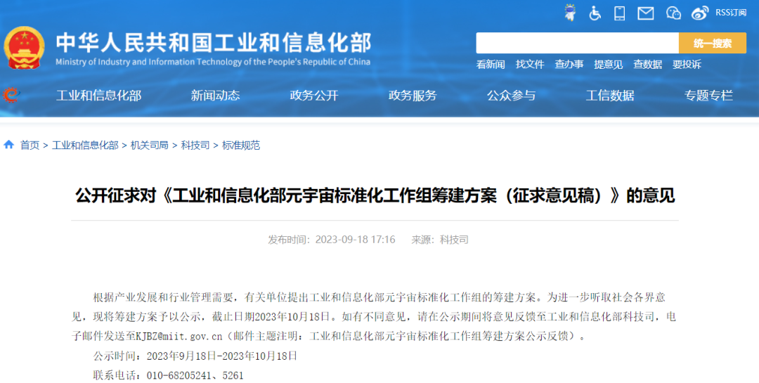 9月18日,工信部发布《工业和信息化部元宇宙标准化工作组筹建方案(征求意见稿)》(下称《征求意见稿》),提出我国需尽快组织国内重点企业、科研院所等优势资源,加强元宇宙行业标准化工作,并推动我国优秀实践方案成为国际标准,提升产业综合竞争力。
