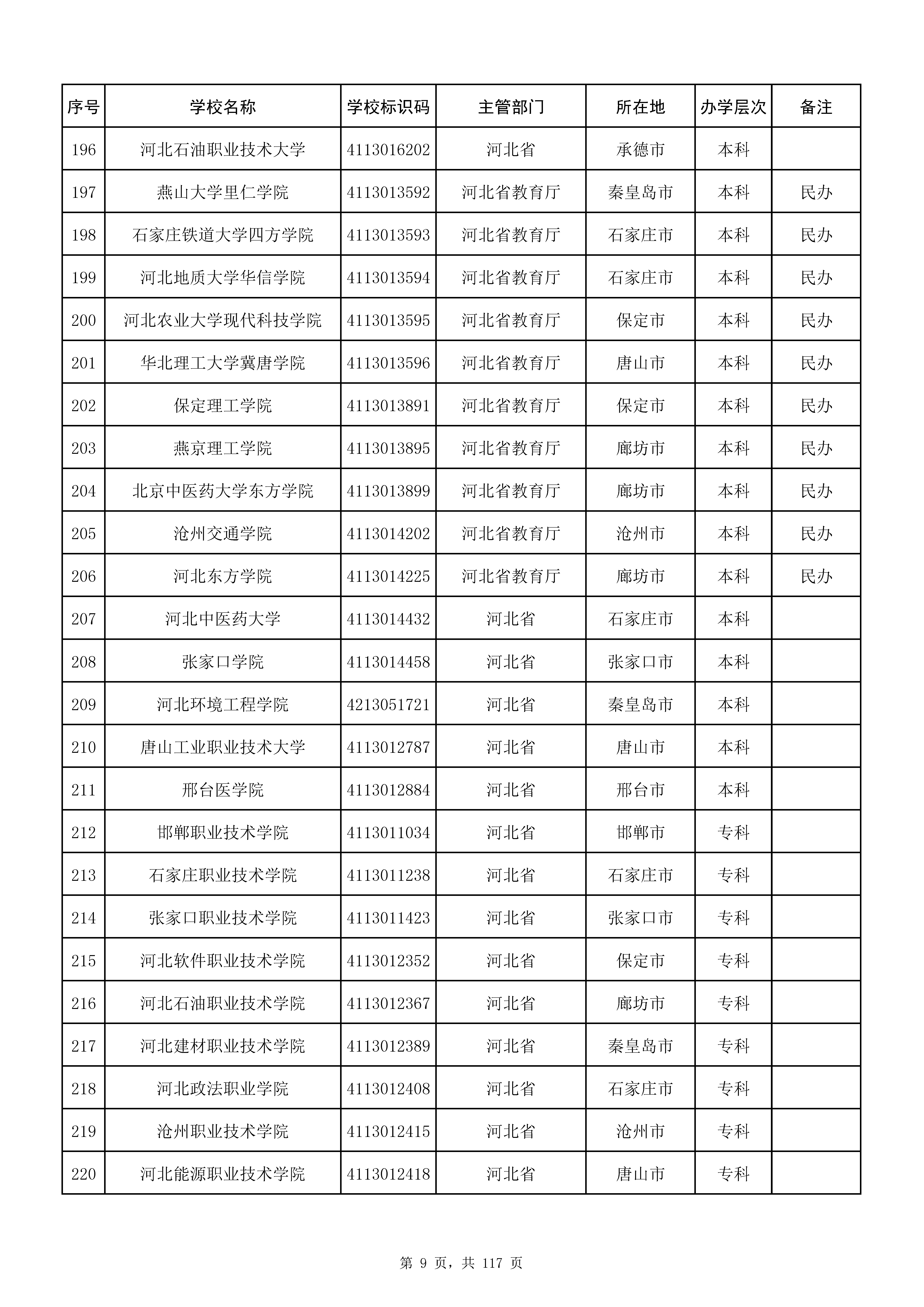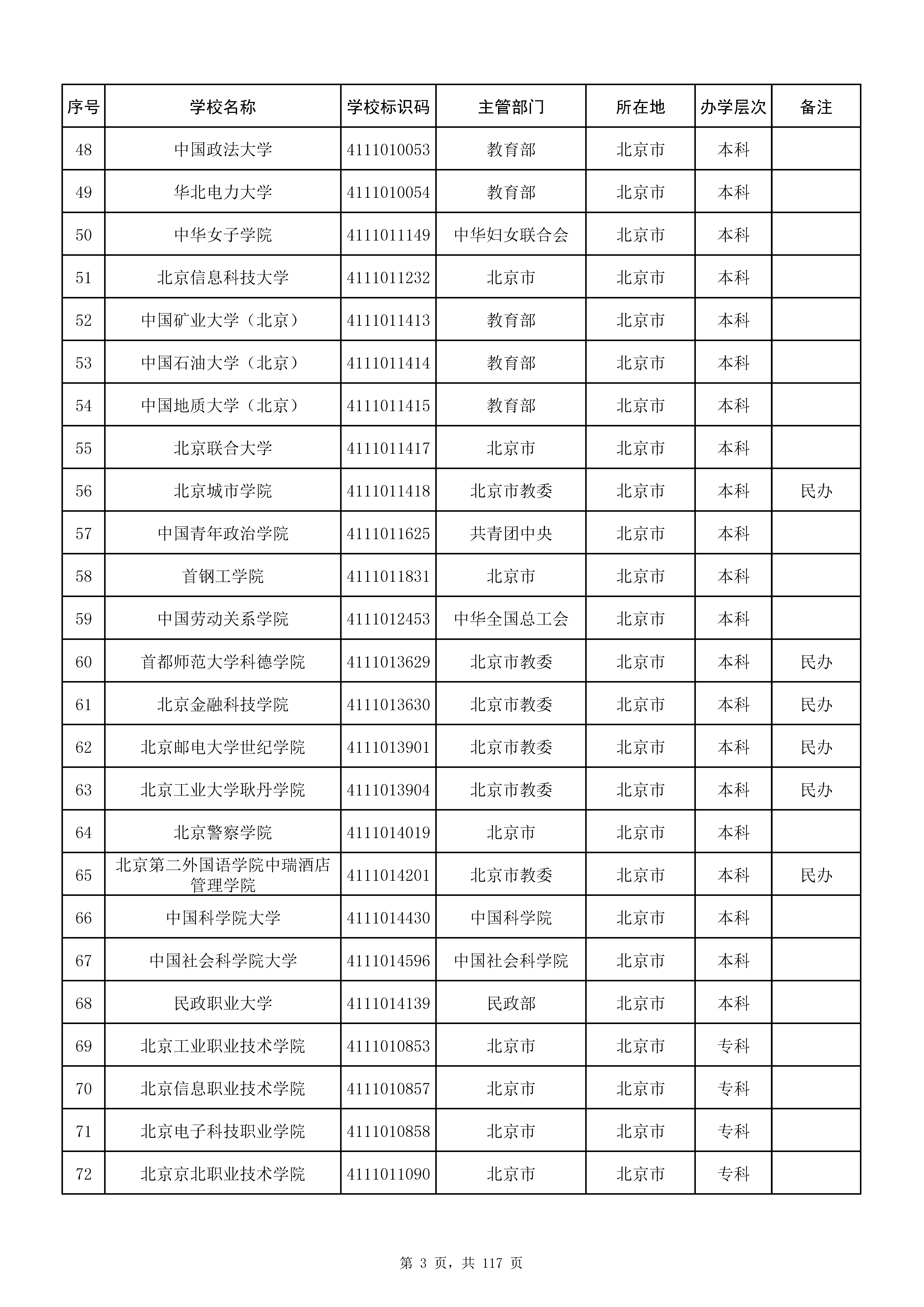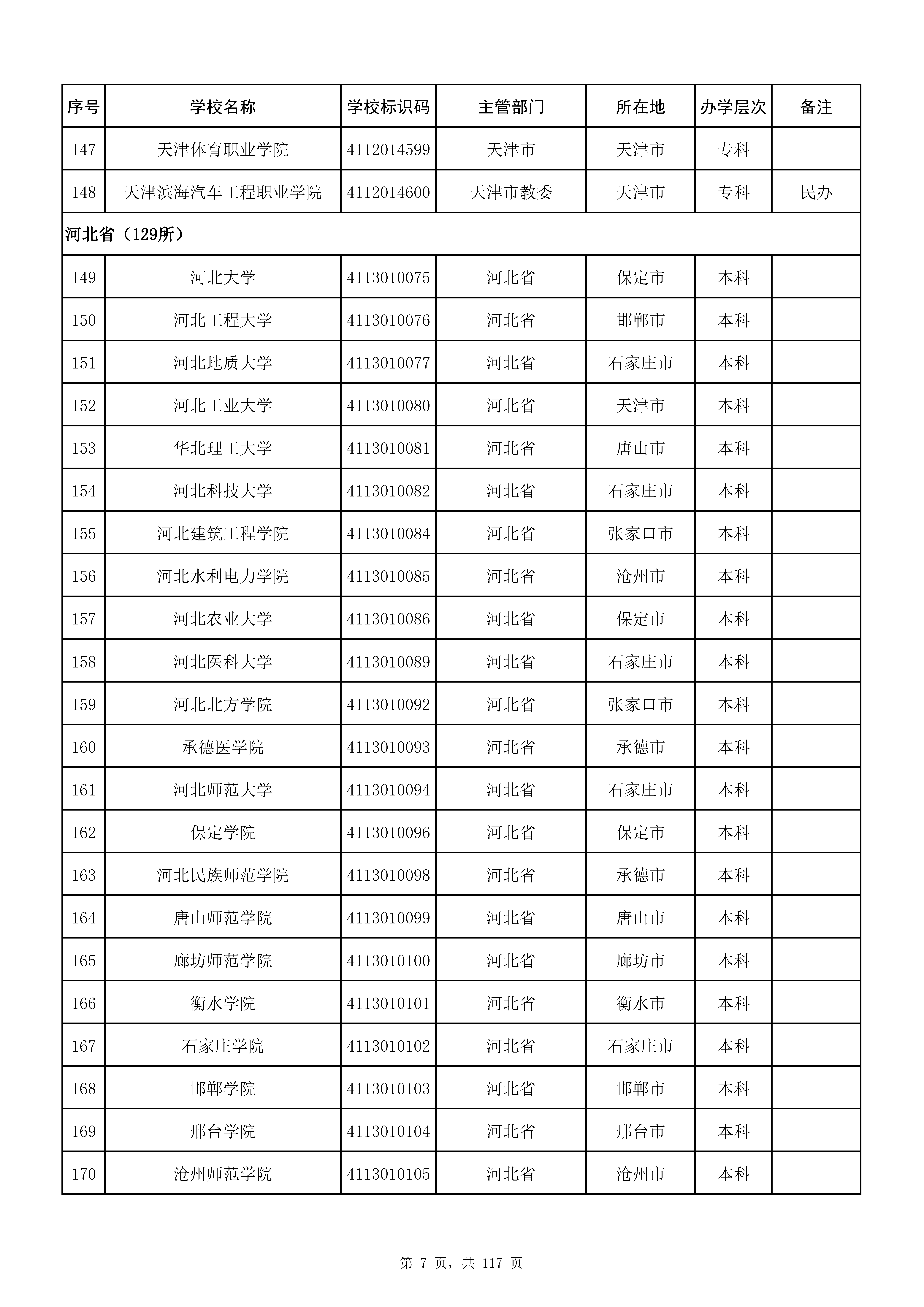 截至2024年6月20日,全国高等学校共计3117所,其中:普通高等学校2868所,含本科学校1308所、高职(专科)学校1560所;成人高等学校249所。本名单未包含港澳台地区高等学校。