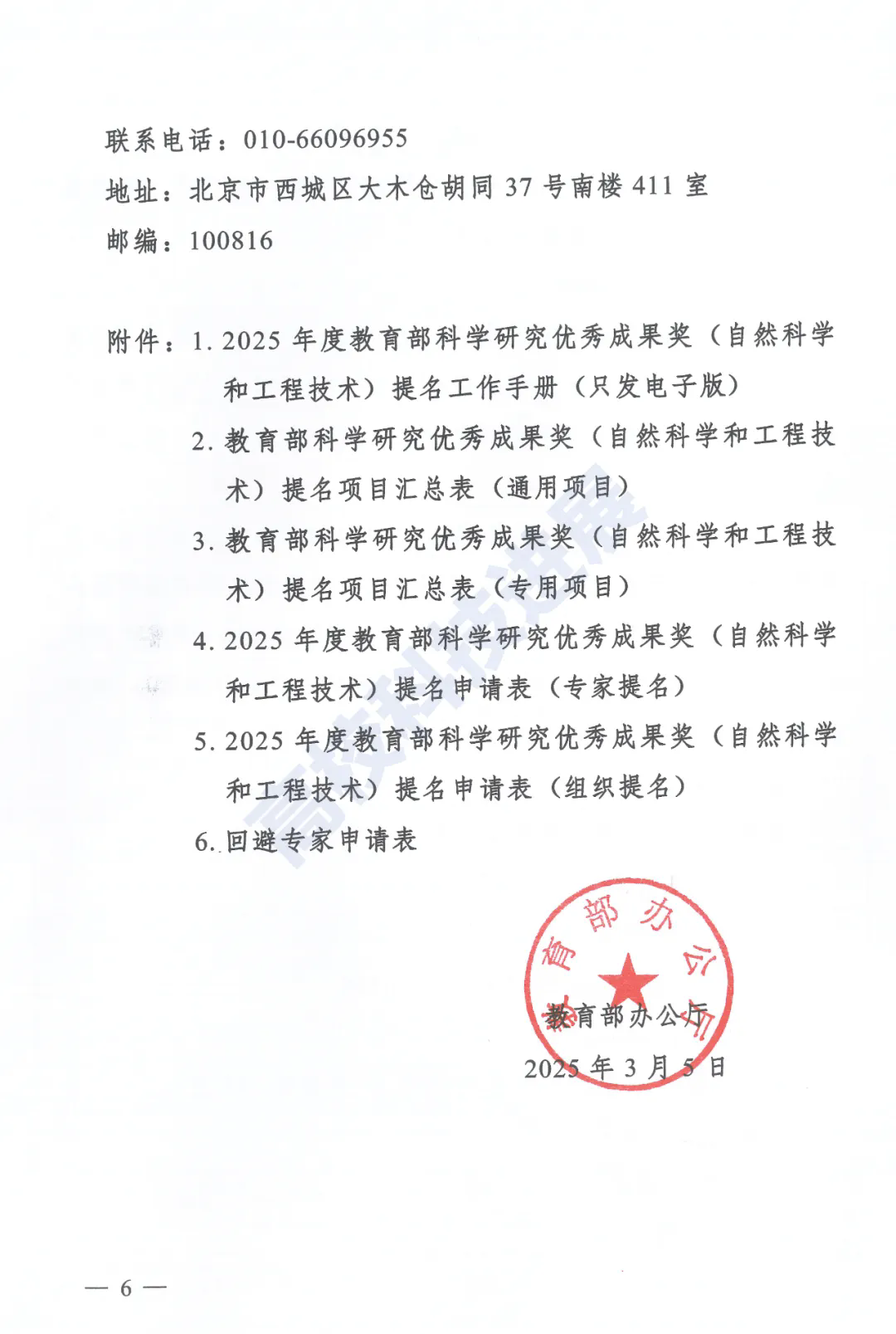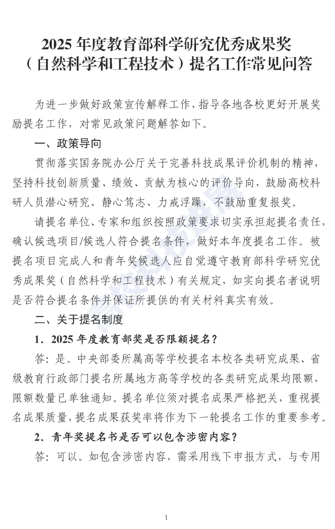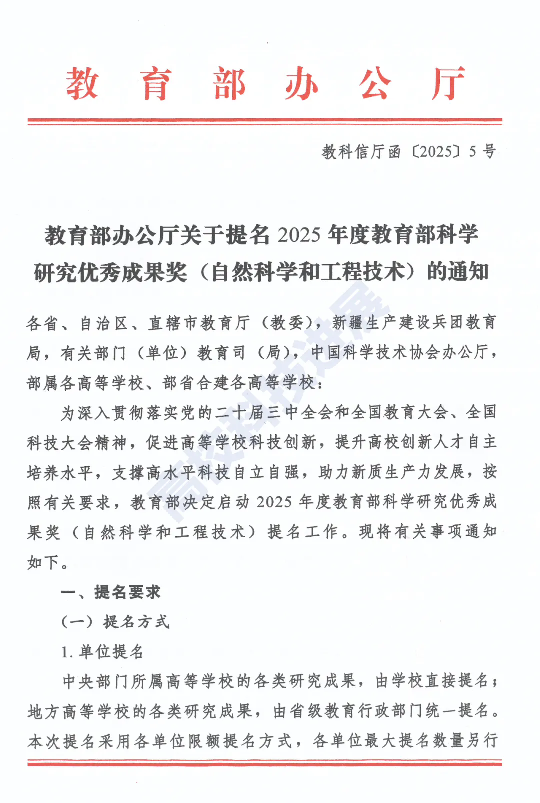 通知与附件资料获取方法:在“高校科技进展”公众号回复【2025年教育部科技奖】。