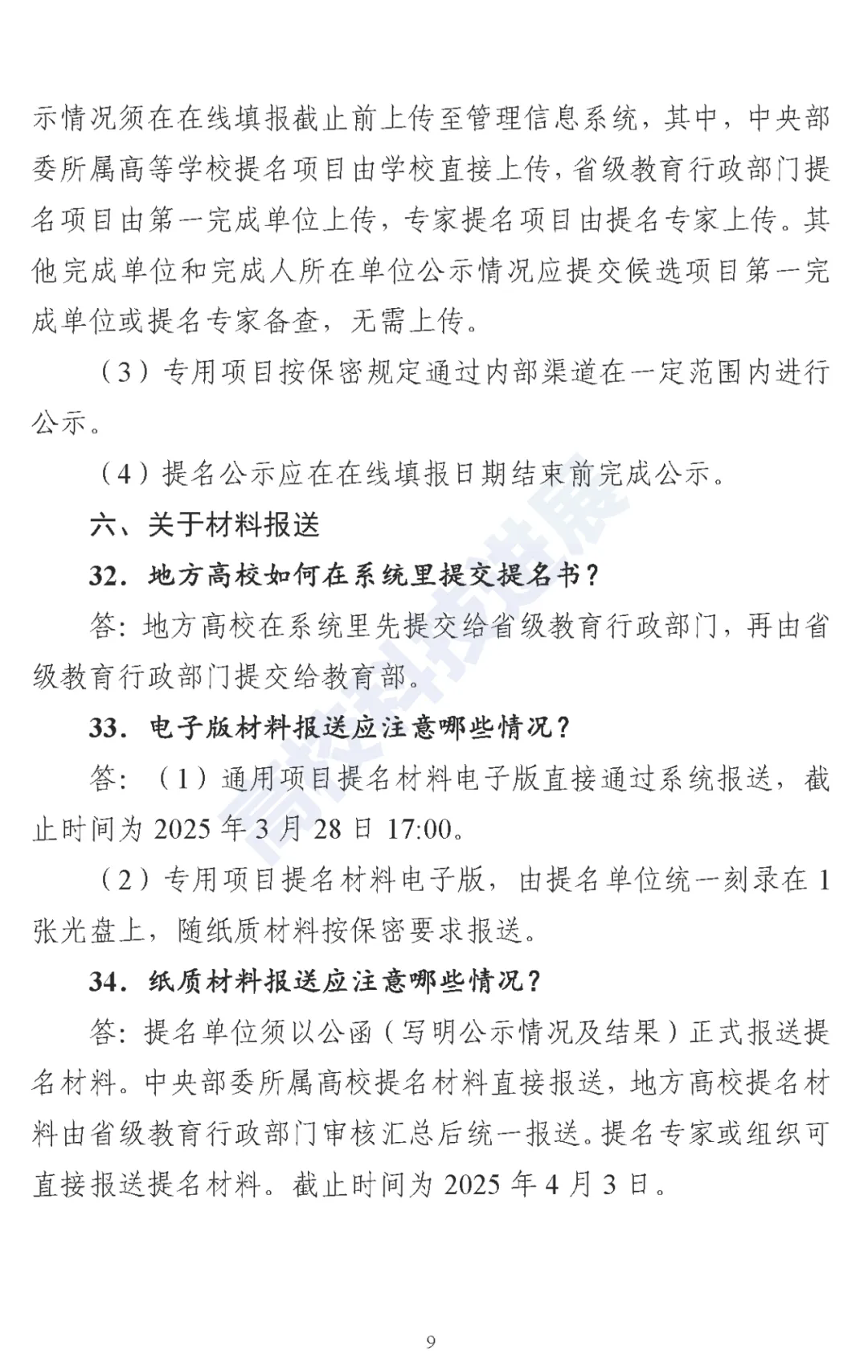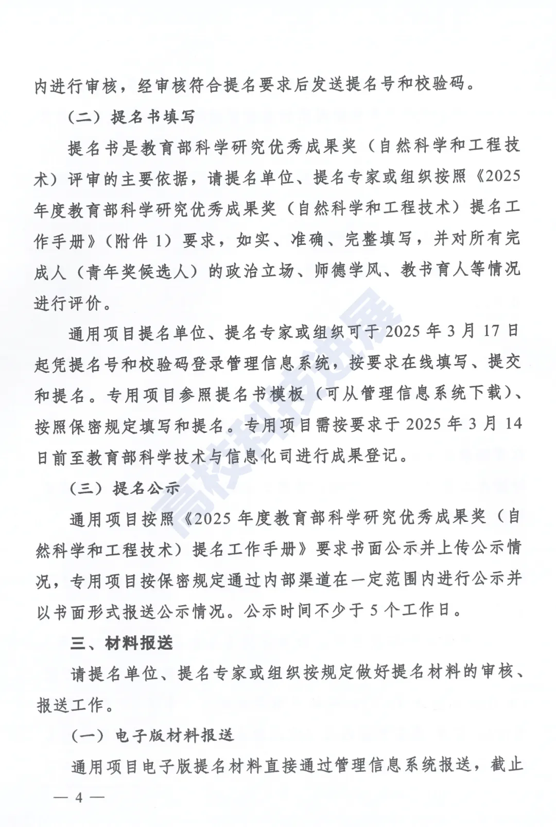 日前,教育部发布《关于提名2025年度教育部科学研究优秀成果奖(自然科学和工程技术)的通知》,按照通知要求,电子版提名材料截止时间为3月28日,纸质版提名材料截止时间为4月3日。
