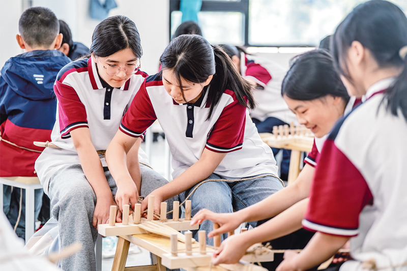 近年来,各地立足当地红色文化资源优势,组织学生以红色旧址遗迹为“教室”,以文物史料为“教材”,开展“行走的思政课”主题教育活动。图为2025年5月12日,云南省昭通市威信县第一中学学生在红色研学实践基地体验编织草鞋,在实践互动中重温红色革命历史。 (新华社记者 胡超/摄)