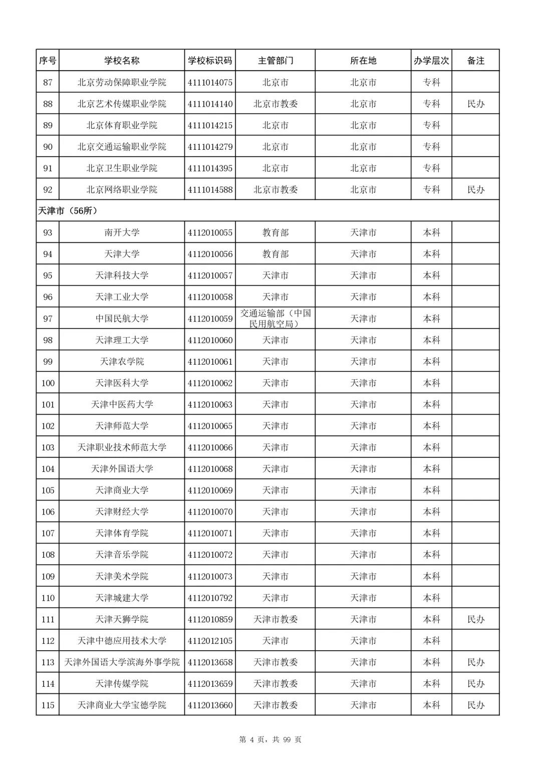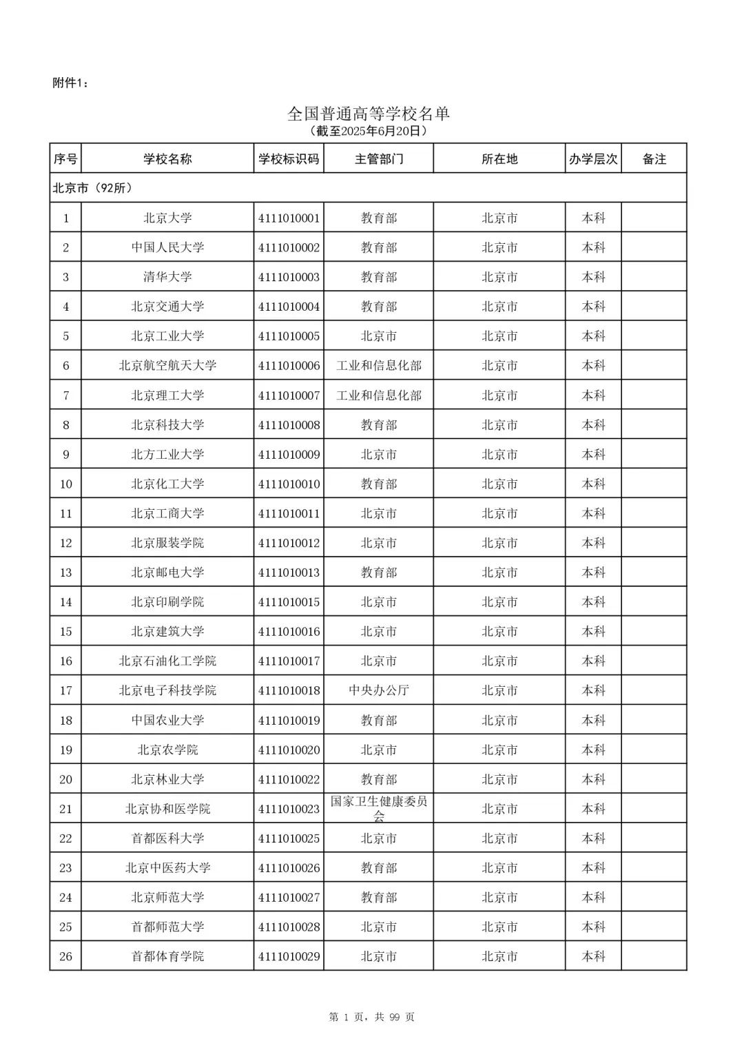 附件:1.全国普通高等学校名单