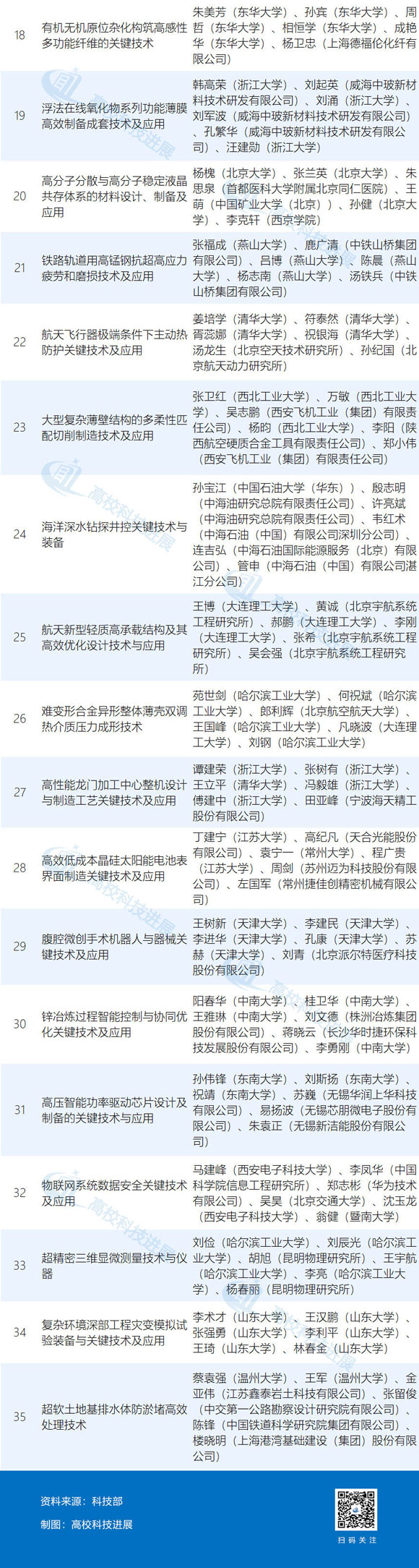 中国科学技术大学、山西大学、中国石油大学(华东)、东华大学和西北工业大学等15所高校分别获得2项,厦门大学、南京大学、吉林大学、华东理工大学、大连理工大学等40所高校各获得1项。