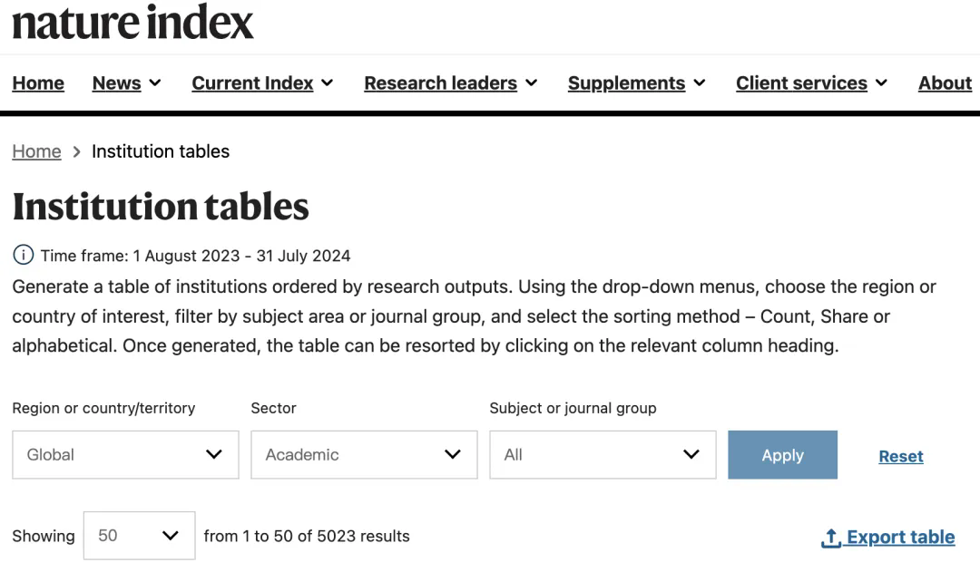 资料来源:自然指数官网