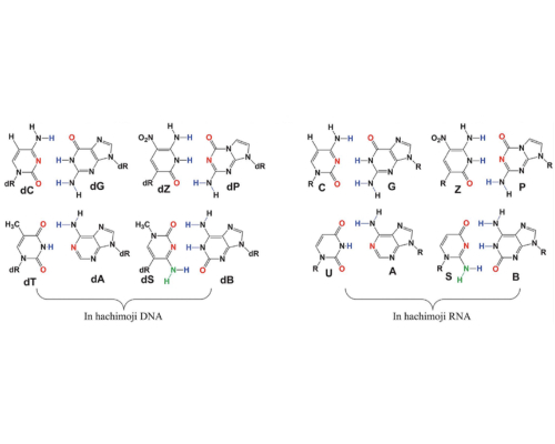 除了包含腺嘌呤等4种天然核苷酸,同时还包含另外4种结构相似的人造信息单元,它们共同构成了双螺旋结构,能够存储和传递信息。