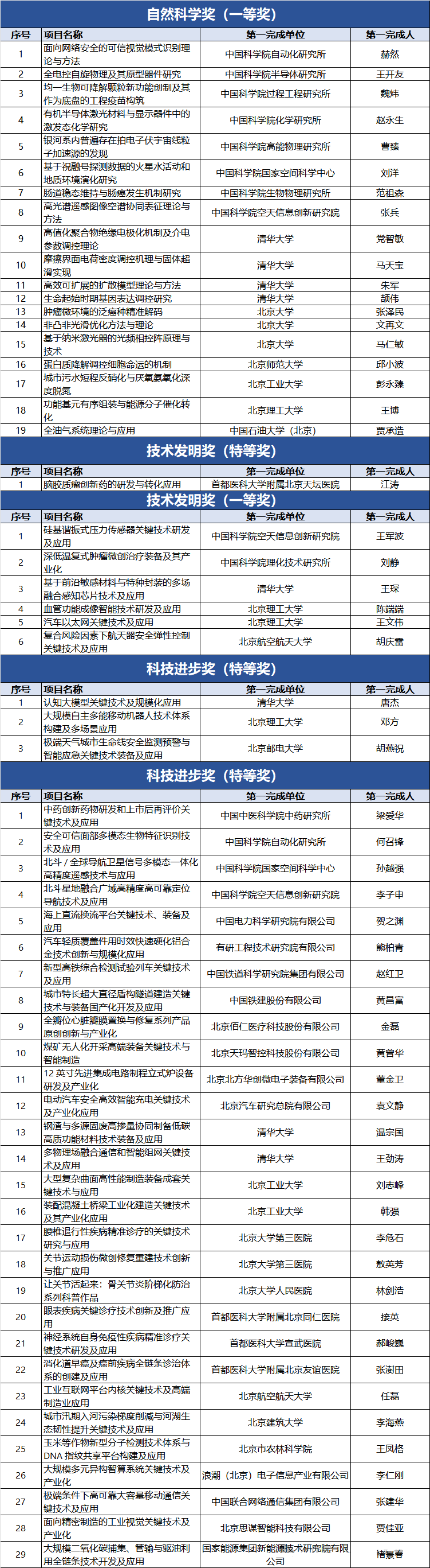 9月29日,北京市科学技术奖励工作办公室公示2025年度北京市科学技术奖项目奖初审结果。