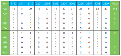 图1 2022年9月CERNIC IPv4地址申请