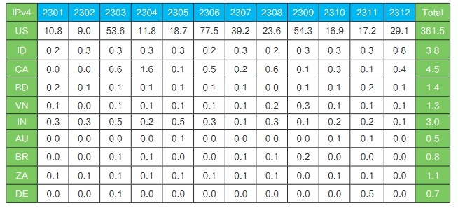 图1 2023年12月CERNIC IPv4地址申请