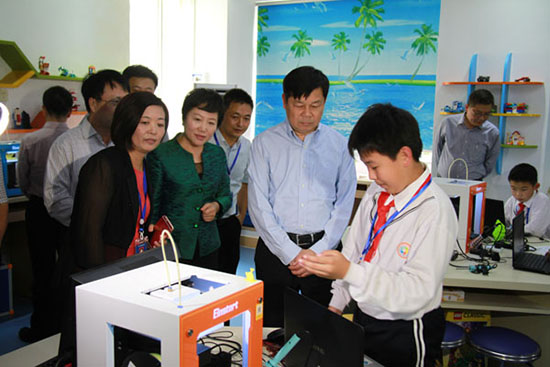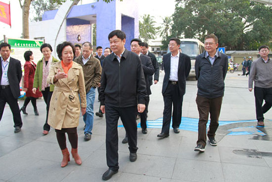 杜占元副部长一行先后考察了海口市秀峰实验学校的数字化平安校园建设,省农垦中学利用移动终端开展教学及管理,海口市第二十七小自主开发及应用数字教学资源,陵水县本号镇民侨小学开展同步课堂及智能语音教具应用,三亚市第九小学智慧校园平台建设的探索与运用,三亚市第一中学开展网络教研及三亚市区域统筹推进教育信息化等情况。 考察结束后,杜占元副部长充分肯定了海南中小学教育信息化工作。他指出,作为三个全国教育信息化试点省之一,海南虽然是最晚一个设为试点,但试点两年多来,取得了很大成绩。他强调,要不断提高认识,充分发挥信息化在教育教学中各层面的作用;要强化应用,把应用作为推进教育信息化的切入点、抓手及目的,越应用才越有体会、越有深度、越有积极性;要顺应信息时代潮流,正确引导师生利用手机等移动终端服务教育教学;要加强培训,特别是对局长、校长的培训。最后杜占元副部长希望海南在现有成绩基础上,继续努力,在教育信息化方面更上一层楼。