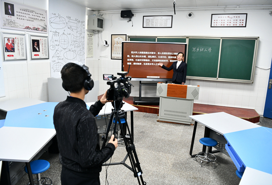 贵阳市第六中学教师在录制远程网络语文课程。新华社供图