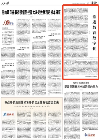 4月27日,《人民日报》理论版刊登了中央财经大学党委书记何秀超发表的署名文章——《推进教育数字化》。