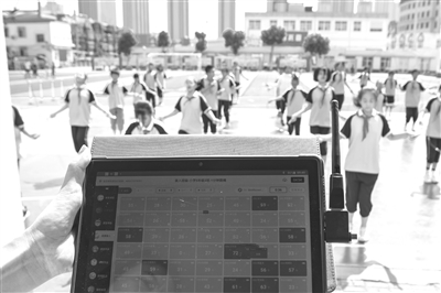唐师附小智慧体育课堂上,教师通过后台实时掌握学生跳绳数据。学校供图