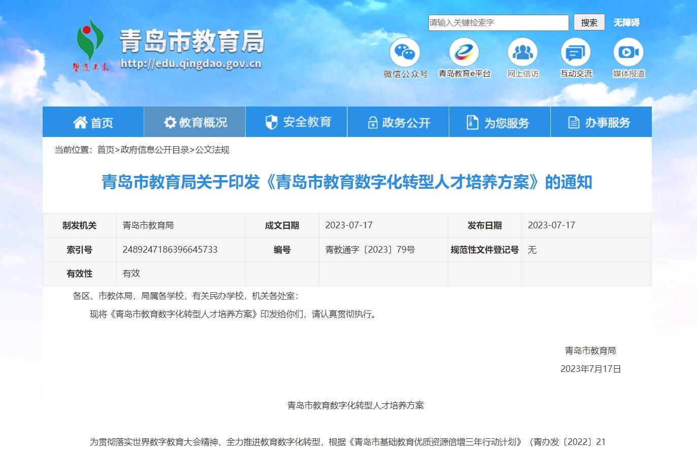 政策解读:《青岛市教育数字化转型人才培养方案》