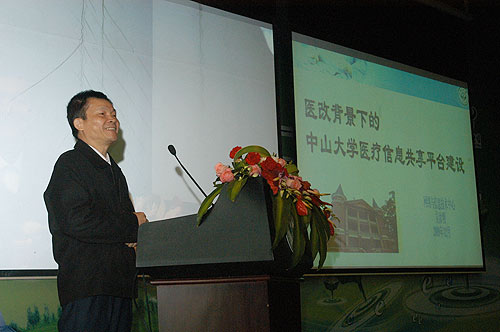 中国教育网讯,2009年12月22日,一年一度的中山大学第五届信息化年会暨第九届教育技术年会在中山大学举行。今年年会的主题是“信息化效益和用户的满意度”。出席嘉宾有中山大学副校长许家瑞、 教育部科技司信息化处处长付恒升、广东省教育厅教育信息中心主任彭红光、高等教育学会教育信息化分会理事长、北京大学教授黄达武、清华大学教授蒋东兴、复旦大学教授宓詠、中国人民大学网络与教育技术中心主任顾涛、中山大学外语教学中心副主任王哲、中山大学医院管理处处长韩玲等。大会由《中国教育网络》杂志独家媒体支持,中国教育网作全程报道。中山大学网络与信息技术中心副主任吴汝明演讲的题目为:医改背景下的医疗信息共享平台。