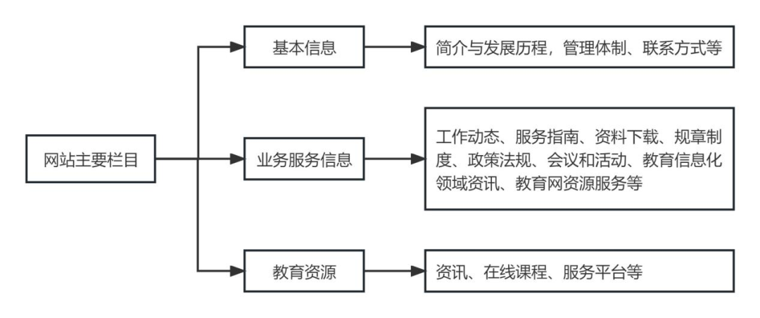 本文从基本信息、业务服务信息、教育资源三个方面介绍平台的栏目与内容建设情况(如图1所示)。
