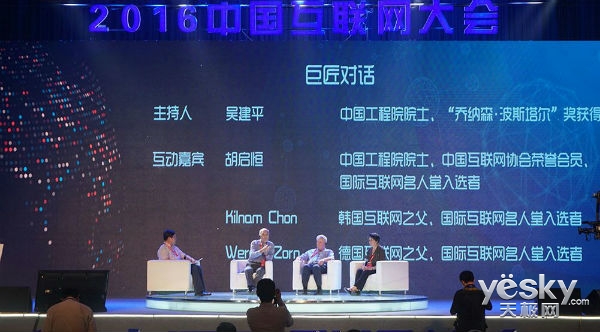 6月21日上午消息,2016(第十五届)中国互联网大会在北京国际会议中心举行,在主论坛上,中国互联网协会荣誉会员胡启恒院士,韩国互联网之父Kilnam Chon教授,德国互联网之父Werner Zorn教授,进行“巨匠对话环节”,中国工程院院士吴建平为主持人。来自三个不同国家的互联网专家谈了三个国家互联网的发展异同以及未来互联网的发展方向。