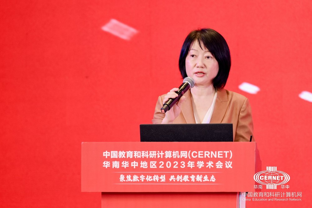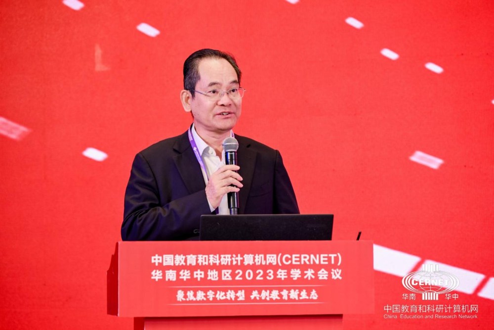 CERNET网络中心主任助理、赛尔网络有限公司副总经理付晓东发表题为《落实国家教育数字化战略,做好CERNET教育科研服务》的报告,提出了CERNET在落实国家教育数字化战略的职责和服务。