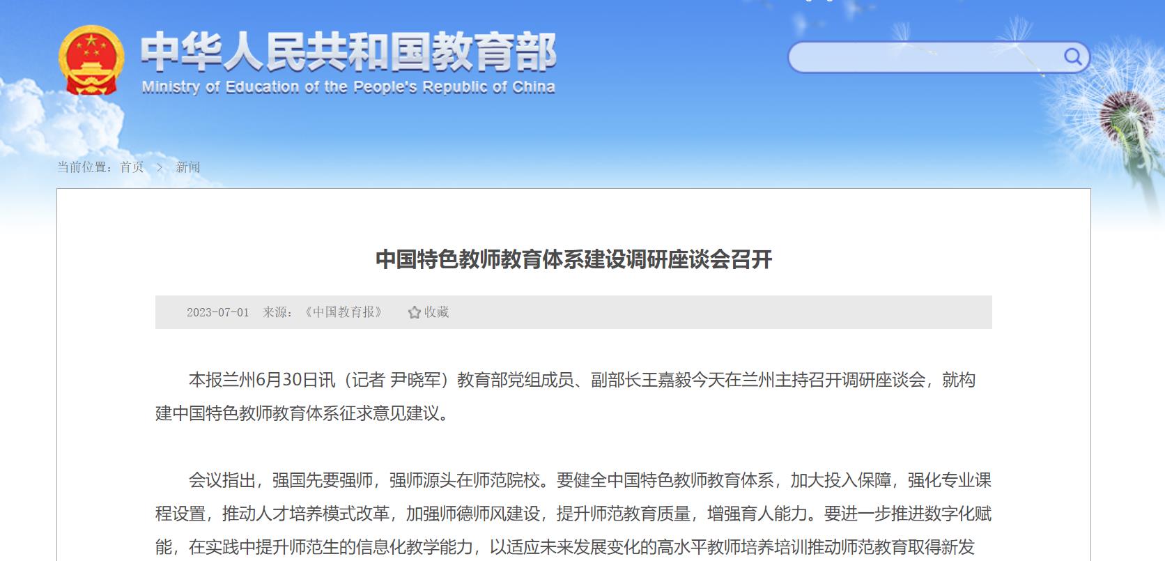 教育部党组成员、副部长王嘉毅6月30日在兰州主持召开调研座谈会,就构建中国特色教师教育体系征求意见建议。会议指出,要进一步推进数字化赋能,在实践中提升师范生的信息化教学能力。详情一起来看——