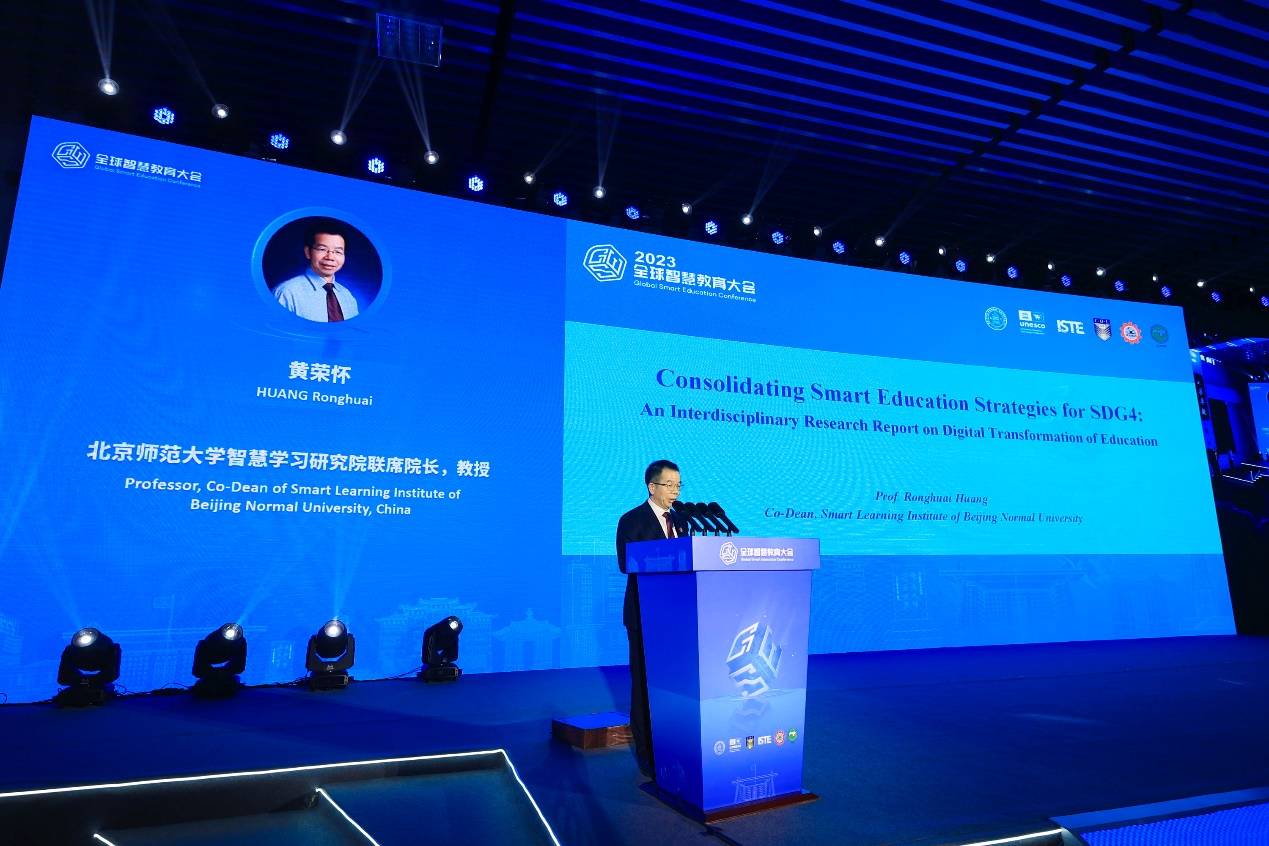 8月20日,在“2023全球智慧教育大会”闭幕式上,北京师范大学智慧学习研究院联席院长黄荣怀教授代表全球智慧教育合作联盟(GSENet)发布了跨学科的联合研究成果“强化面向教育2030议程的智慧教育战略:教育数字化转型跨学科研究报告”。