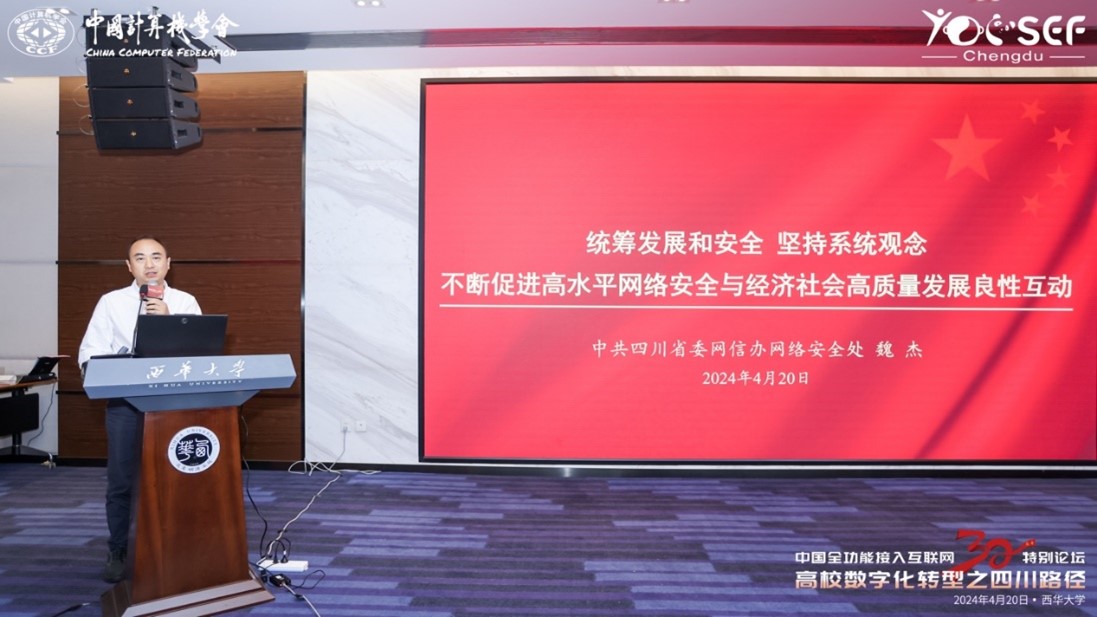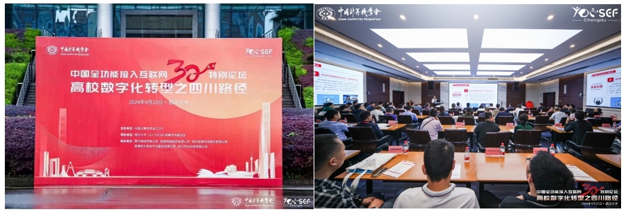 2024年4月20日,在中国全功能接入互联网30周年纪念日这一具有里程碑意义的时刻,由中国计算机学会(CCF)主办,西华大学与CCF YOCSEF成都学术委员会联合承办的CCF特别论坛--“高校数字化转型之四川路径”在西华大学隆重举行。