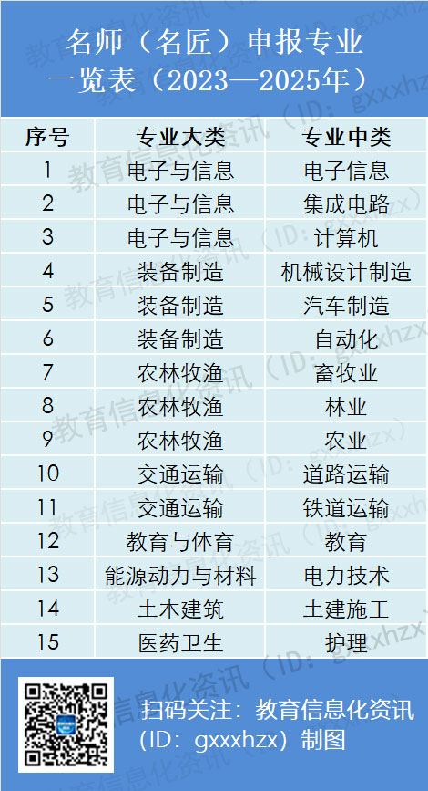 职教“三名”计划的培养方案提出,高等职业学校名师(名匠)的培养重点包括数字化素养、工作室建设等内容;中等职业学校名校长的培养重点包括学校信息化建设和数字化转型、工作室建设等内容。