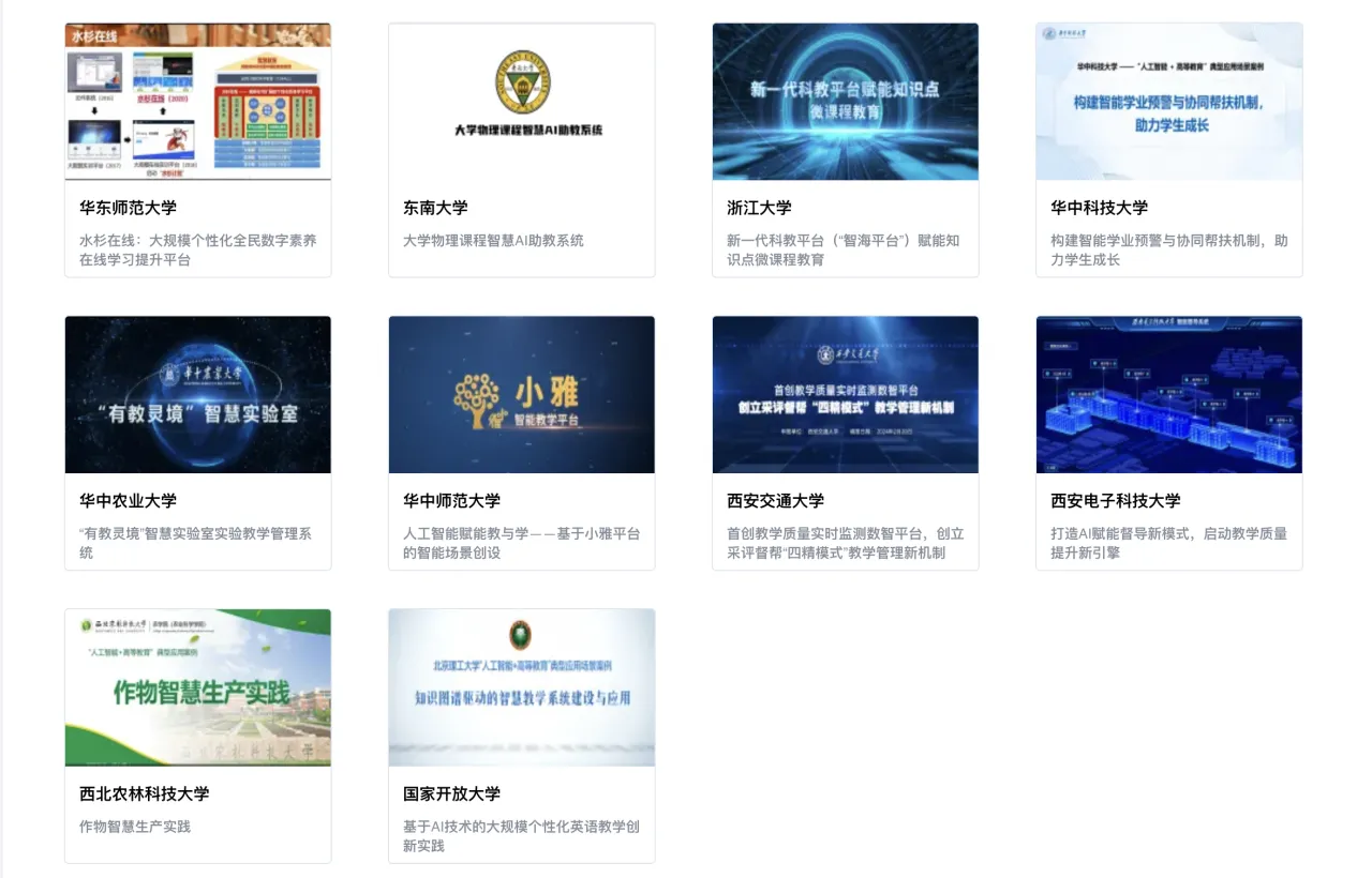 为深入贯彻落实国家关于开展“人工智能+”行动的战略部署,积极推动高等教育与人工智能技术的融合发展,利用智能技术支撑人才培养模式的创新、教学方法的改革、教育治理能力的提升,教育部高等教育司组织了首批“人工智能+高等教育”典型应用场景案例的征集和论证工作,寻找、发掘和推广在人工智能技术应用上具有代表性、前瞻性且能够产生积极影响的高等教育实践案例。经高校申报、专家论证等环节,确定首批18个“人工智能+高等教育”应用场景典型案例。