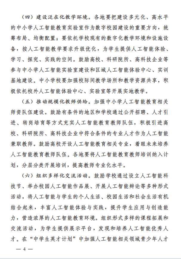 加大对AI教育的投入,支持课程资源开发、教师培训、硬件设施建设等。