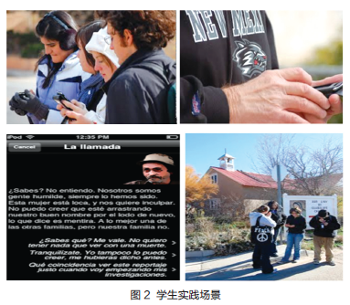 利用ARIS 平台(ARIS是增强现实的互动讲故事),一个开放资源的游戏编辑器和在威斯康星麦迪逊大学开发的一个小集团客户端,已成功指导大学的学生在最短的时间内使用Mentira。ARIS iPhone或iPod-touch客户端软件可以免费在iTunes商店下载,学生在实践中的场景如图2所示。