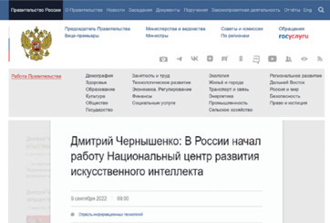 9月9日,俄罗斯副总理德米特里·切尔尼申科表示,俄罗斯国家人工智能发展中心已在俄罗斯政府的领导下开始运作,将为商业、科学和国家机构选择有效的人工智能解决方案,并监测行业发展关键指标。该中心的主要工作是为推广人工智能提供专家支持、促进落实重要基础设施任务、推动国际合作,以及推进一系列人工智能领域关键项目,致力于落实俄罗斯总统普京批准的国家人工智能战略。德米特里指出,该中心将成为实施国家人工智能发展战略以及联邦人工智能项目“数字经济”活动的工具之一。