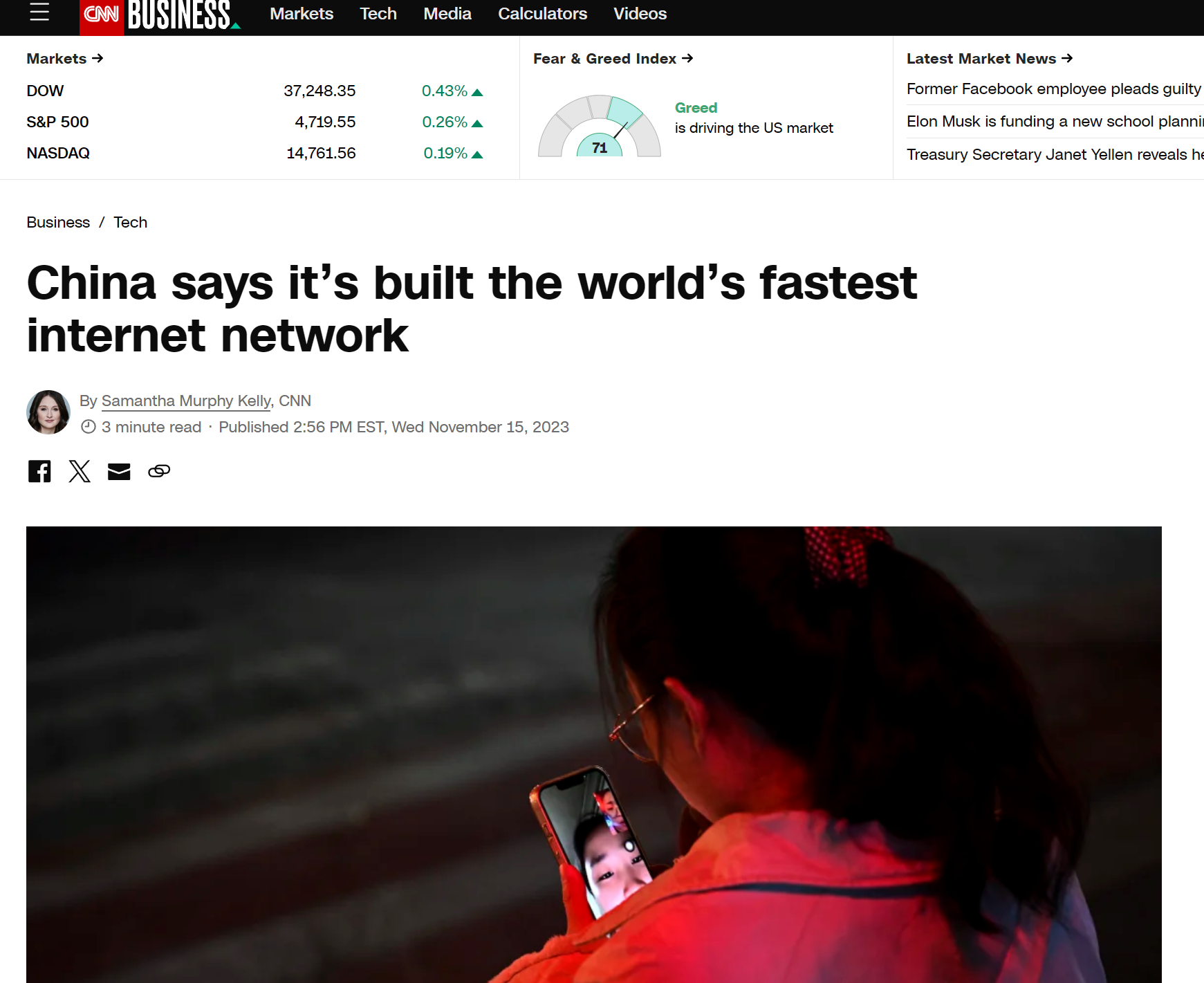 文中表示“中国在领导人访美期间发布重大科技进展,这已经不是第一次”,并强调“骨干网络是将互联网流量传输到不同地理位置的网络基础设施,可以支持来自5G和电动汽车等技术的大规模数据传输需求。这项更强大、更快速的互联网服务的推出对于企业具有重要意义,为需要大量带宽的基于中国的企业提供基础,同时还有助于实现更快的信息传输,提供股票交易的优势,并影响国家安全的考量。”