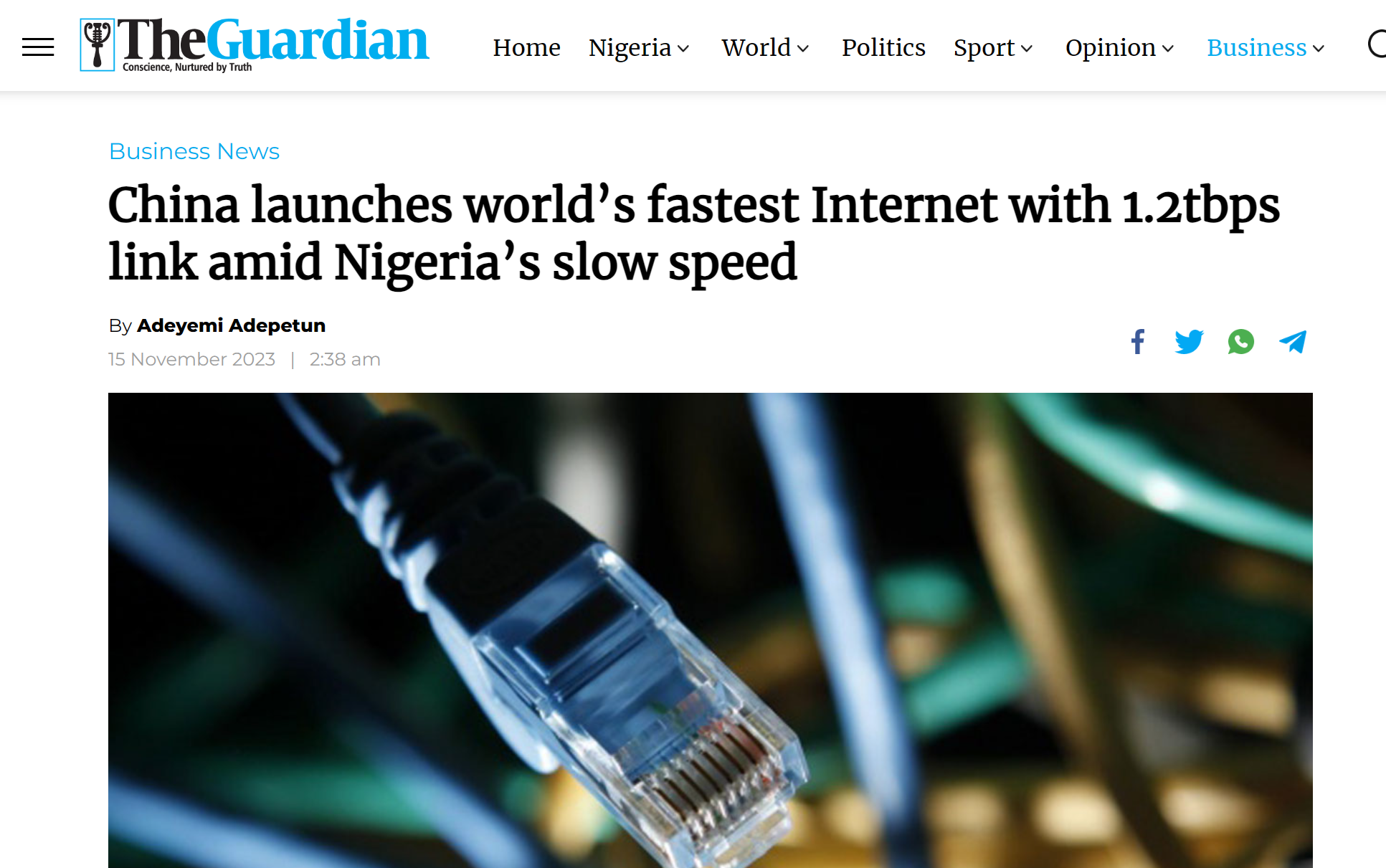 英国《卫报》在相关报道中指出:“世界上大多数互联网骨干网络的运行速度仅为每秒100G。甚至美国最近才完成向每秒400G的第五代互联网的过渡。北京-武汉-广州连接是中国未来互联网技术基础设施(FITI)的重要组成部分,这一项目耗时10年,标志着国家级中国教育和科研计算机网CERNET的最新版本的问世。”