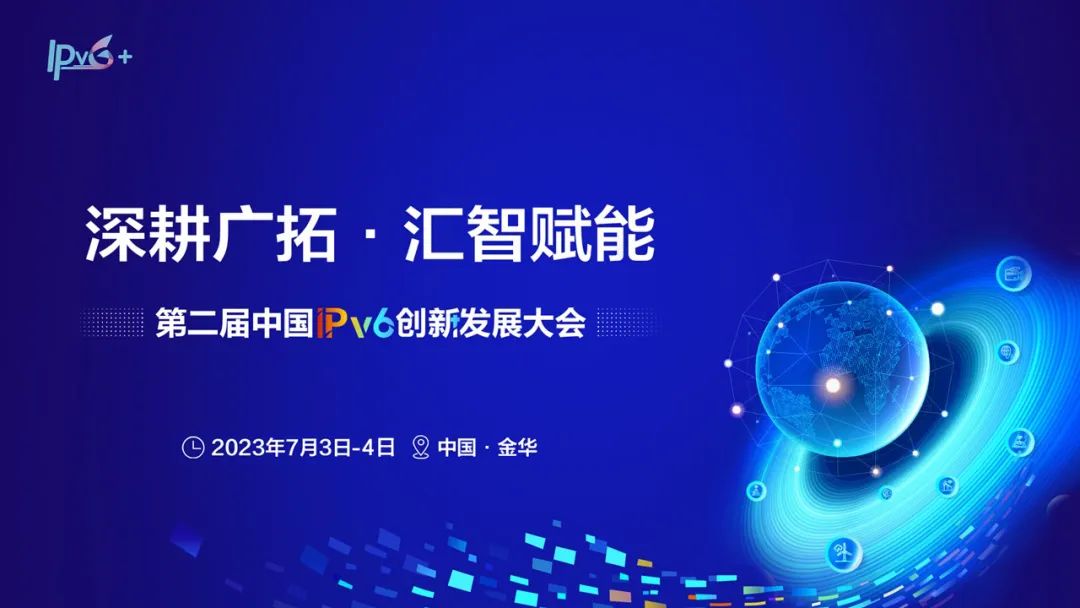 为贯彻落实习近平总书记关于科教兴国、网络强国、数字中国的重要思想和《关于加快推进互联网协议第六版(IPv6)规模部署和应用工作的通知》部署安排,在中央网信办等部委指导下,由推进IPv6规模部署和应用专家委员会、浙江省委网信办、金华市人民政府主办的第二届“中国IPv6创新发展大会”,将于2023年7月3日-4日在浙江金华召开。大会以“深耕广拓、汇智赋能”为主题,设置1个峰会主论坛和8个平行分论坛,邀请IPv6领域的院士、领导、专家共同总结我国IPv6发展成果,深入交流最新技术进展,打造国内IPv6领域影响力最大的高水平峰会,促进我国IPv6创新发展。