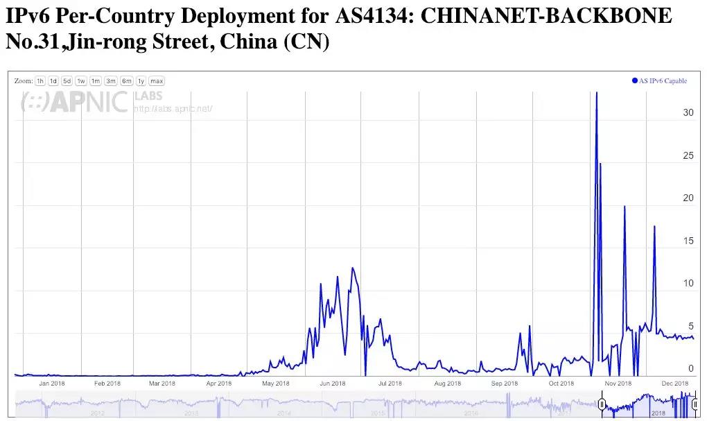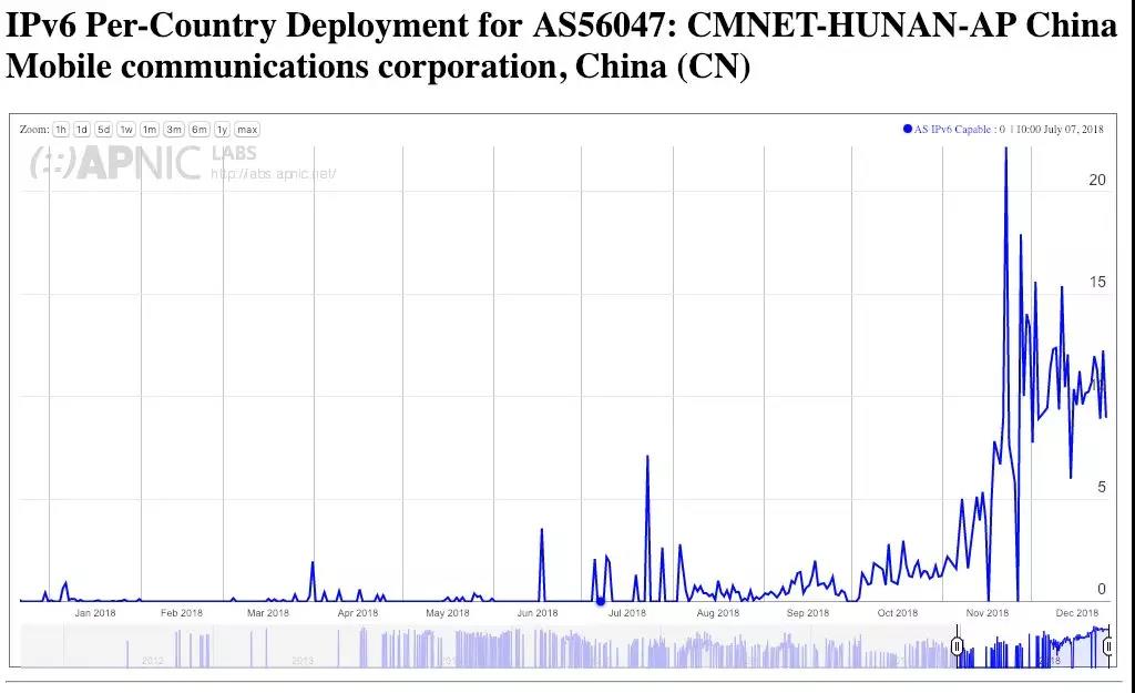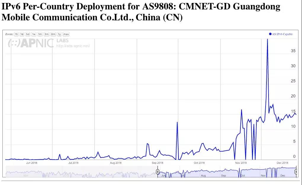 在过去的几个月里,我们看到了一些中国的规模部署IPv6服务的证据,这在中国移动的区域网络和中国ChinaNet主干网的网络中最为明显。