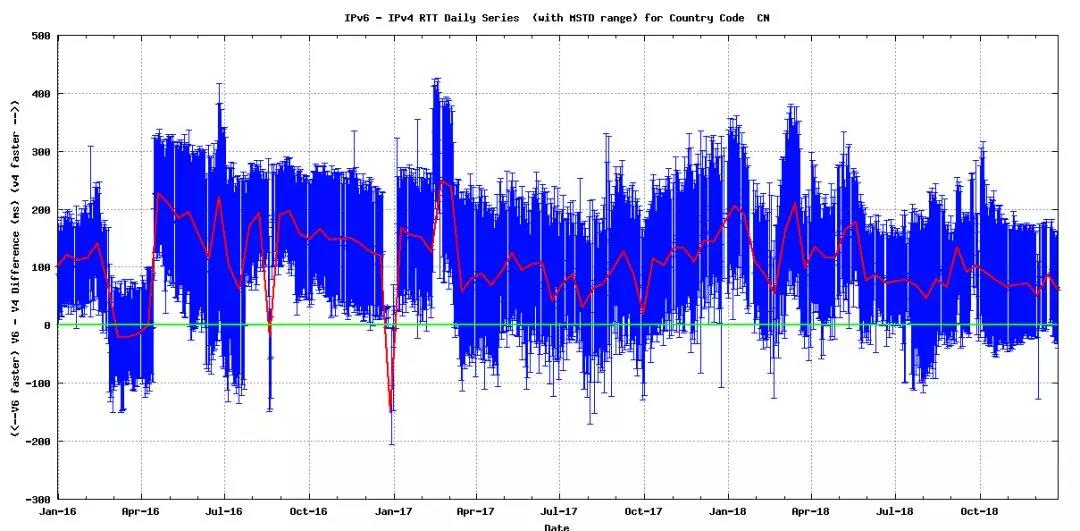 图17 中国IPv6/IPv4 RTT比较