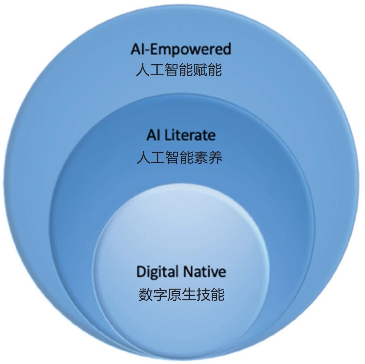 图2 数字原生技能、人工智能素养、人工智能赋能的关系