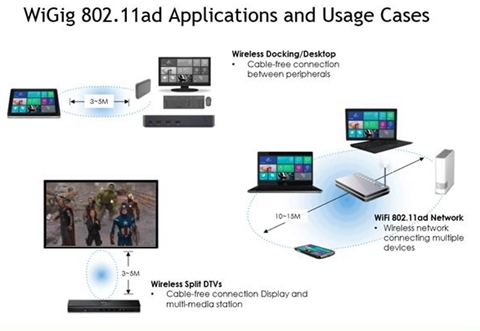 目前致力于802.11ad 解决方案上的芯片商,就属英特尔、高通与莱迪思半导体旗下的SiBEAM三家。在本次台北电脑展上,SiBEAM展示了一系列802.11ad解决方案。