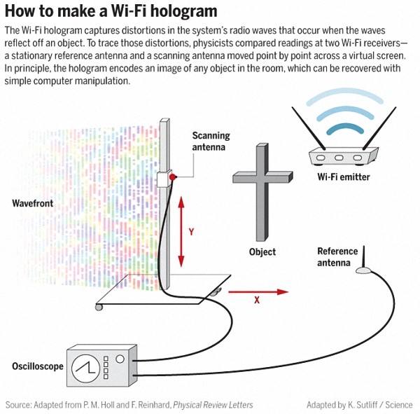 据科学(Science)杂志报道,德国慕尼黑技术大学(TUM)量子传感器专家Friedemann Reinhard称,这个想法在几年前就有了。Reinhard说,当时他们在午餐中讨论通过Wi-Fi信号将会看到怎样的世界。Reinhard称,很明显的是,如果想要通过Wi-Fi看到世界,这就需要制作全息图。
