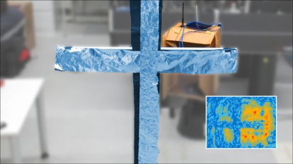 对于虚拟屏幕上的每个点,研究人员都比较了两个接收器同时接收到的信号,并通过绘制由铝十字架引起的延迟来制作全息图。虚拟全息图不完全像传统的全息图,因为研究人员通过照射更多的无线电波无法恢复对象的图像。相反,科学家们用计算机及时地测算无线电波从屏幕向后方碰到物体的距离。然后,十字架就显现出来了。