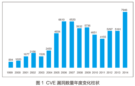 各类漏洞的数量和威胁等级都是在不断动态变化的,图1是近些年国际权威的CVE(Common Vulnerabilities & Exposures)通用漏洞数量变化趋势图。