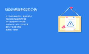10月20日,360云盘通过其官方微博发布服务转型公告称,由于云盘存储的私密性、管理的复杂性,导致无法解决盗版侵权等问题,360云盘即将转型企业云服务,同时停止个人版云盘,将在2016年11月1日起停止上传服务,在2017年2月1日起关闭服务。