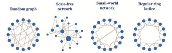 生物神经网络属于图2的小世界网络(Small-WorldNetwork)。在这样的网络里,信息传递速度快,并且少量改变几个连接,就可以显著地改变网络的表现,对已存在的网络进行调整。人类社会中也存在这种小世界网络。