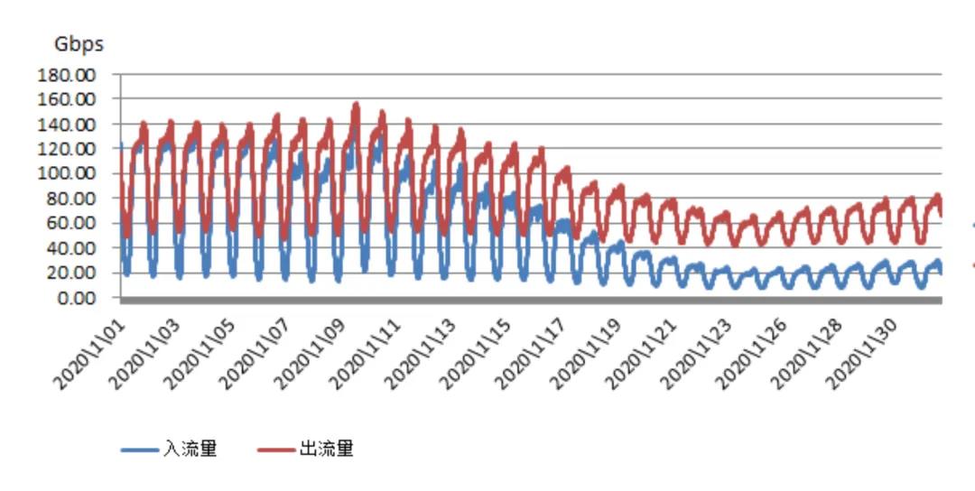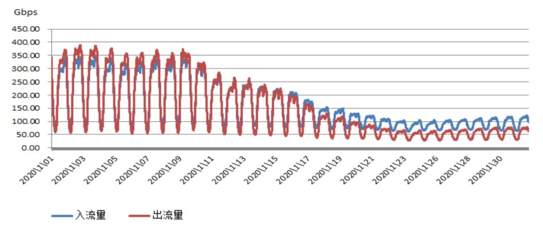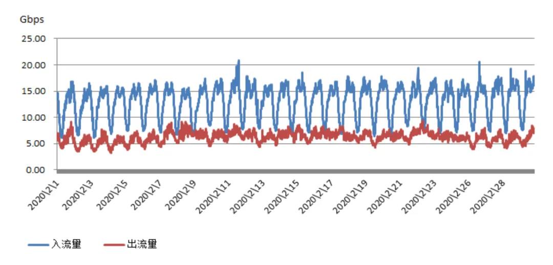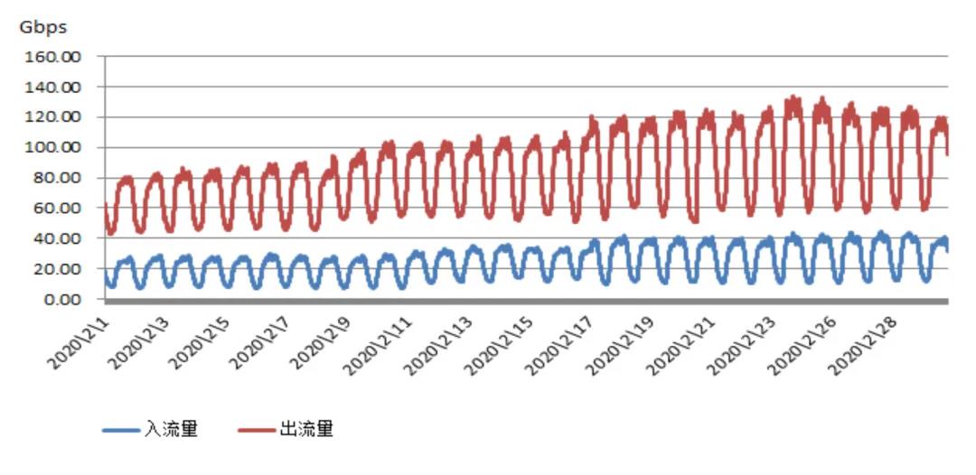 2020年1月、2月CERNET主干网流量均呈下降趋势。