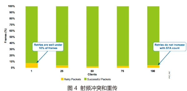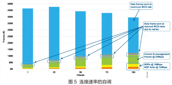 2.连接速率的自适应下调也不是系统吞吐量下降的主要原因。从图5中可以观察到,由于retry导致Wi-Fi终端自适应降低射频速率的数量并未明显增加,因此自适应的速率调节也不是系统吞吐量下降的可能原因。